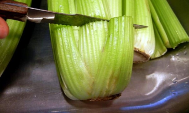 In a few days you will start to see small leaves emerging from the center of the celery root. In about a week small stalks and leaves will start emerging, and you will start to see the roots coming in around the base of the celery root.